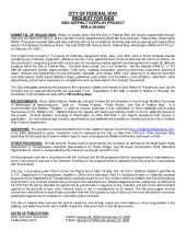 This project shall consist of: Furnishing all materials, equipment, tools, labor, and other work or items incidental thereto (excepting any materials, equipment, utilities or service, if any, specified herein to be furnished by the Owner or others), for the construction, sequencing and traffic control plan for overlaying existing asphalt concrete pavement in eight (8) different locations within the City of Federal Way. The work shall include, but is not limited to: Hot Mix Asphalt (HMA Cl. Β½β PG 58H-22) pavement overlay (approximately 7,300 tons), roadway excavation, planning bituminous pavement, pavement repair, removal and replacement of curb and gutter, sidewalk, curb ramps, traffic curb, repairing or re-aligning manholes and catch basins, traffic signal detection loops, pedestrian push button and foundation, channelization, restoration, utility adjustments, and all items necessary to complete the work as described in the Contract Documents.