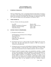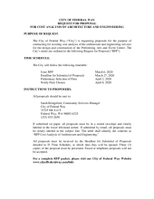 The City of Federal Way (“City”) is requesting proposals for the purpose of contracting for securing cost analysis of the architecture and engineering services for the design and construction of the Performing Arts and Event Center. The City’s needs are outlined in the attached Request for Proposal (“RFP”).