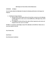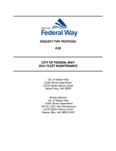 The City of Federal Way ("City") is requesting proposals for the purpose of selecting a primary contractor for providing maintenance and repair services, including labor, parts and materials necessary for the various classifications, types, and makes/models of vehicles. This may not be an exclusive maintenance contract. A list of existing city and police vehicles is attached as examples only. The number, make/model and composition may change without prior notice. The City's needs are outlined in the following Request for Proposal ("RFP").