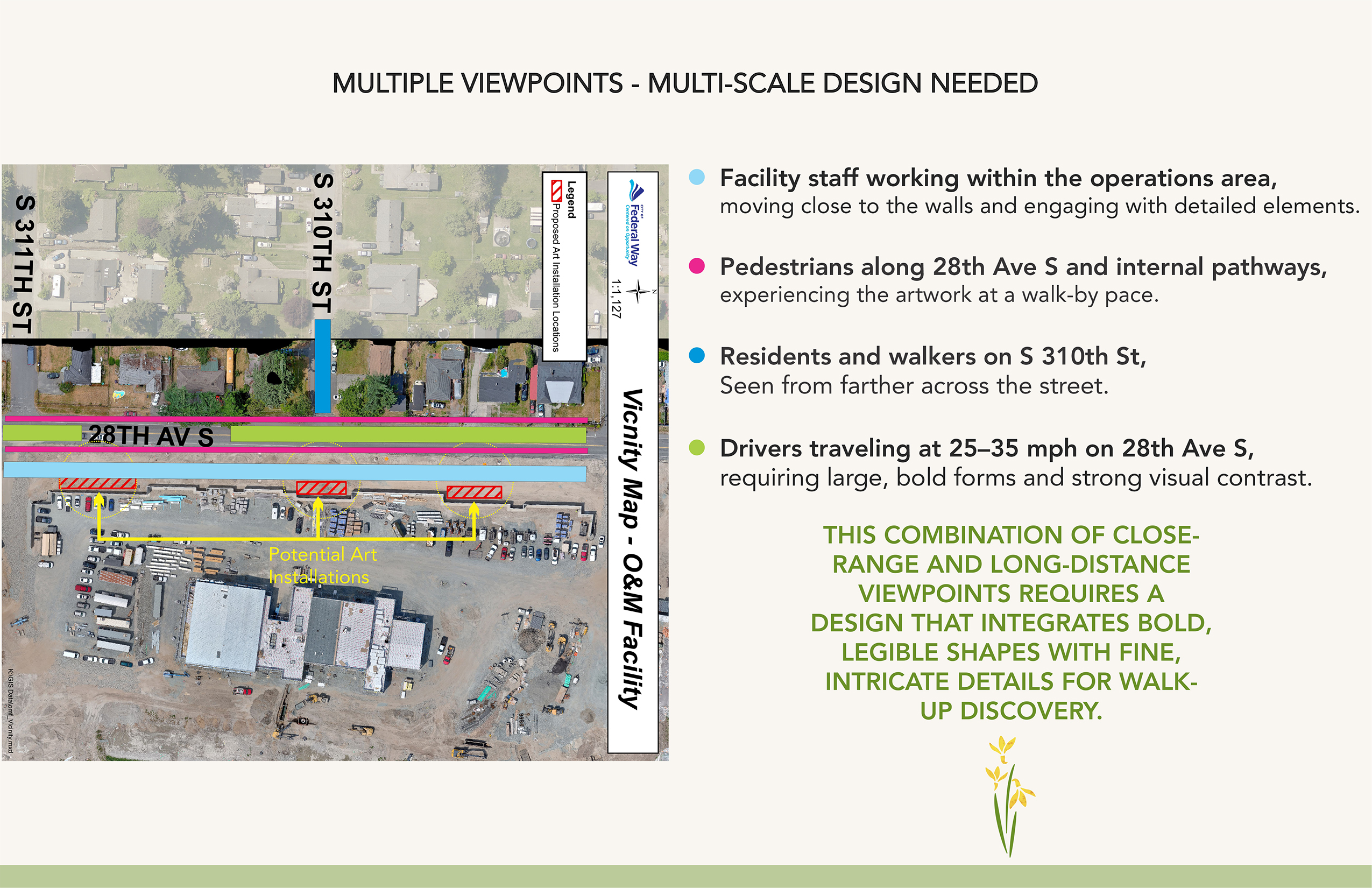 This design elevates Operations & Maintenance workers as the stewards of the living city, weaving their story across three designated sites and three additional locations for a unified and powerful experience.
