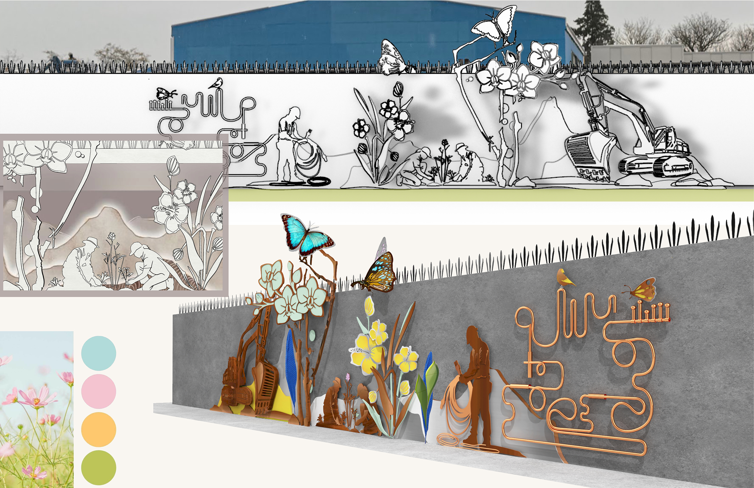 By placing the city at the center, embraced by the natural environment, the installation reflects the profound responsibility O&M holds in sustaining both urban systems and the ecosystems that surround them. It becomes a tangible narrative, bringing visibility and honor to the workers whose contributions are often hidden behind the wall.