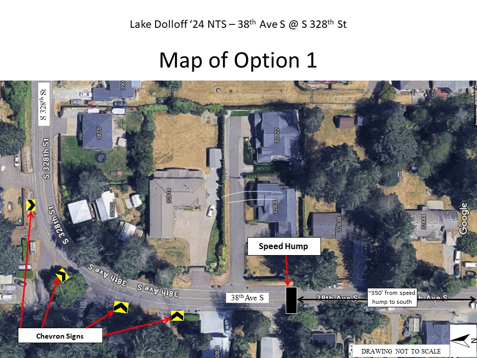 This project proposes to construct one (1) speed hump and multiple chevrons signs on 38th Ave S and S 328th St.